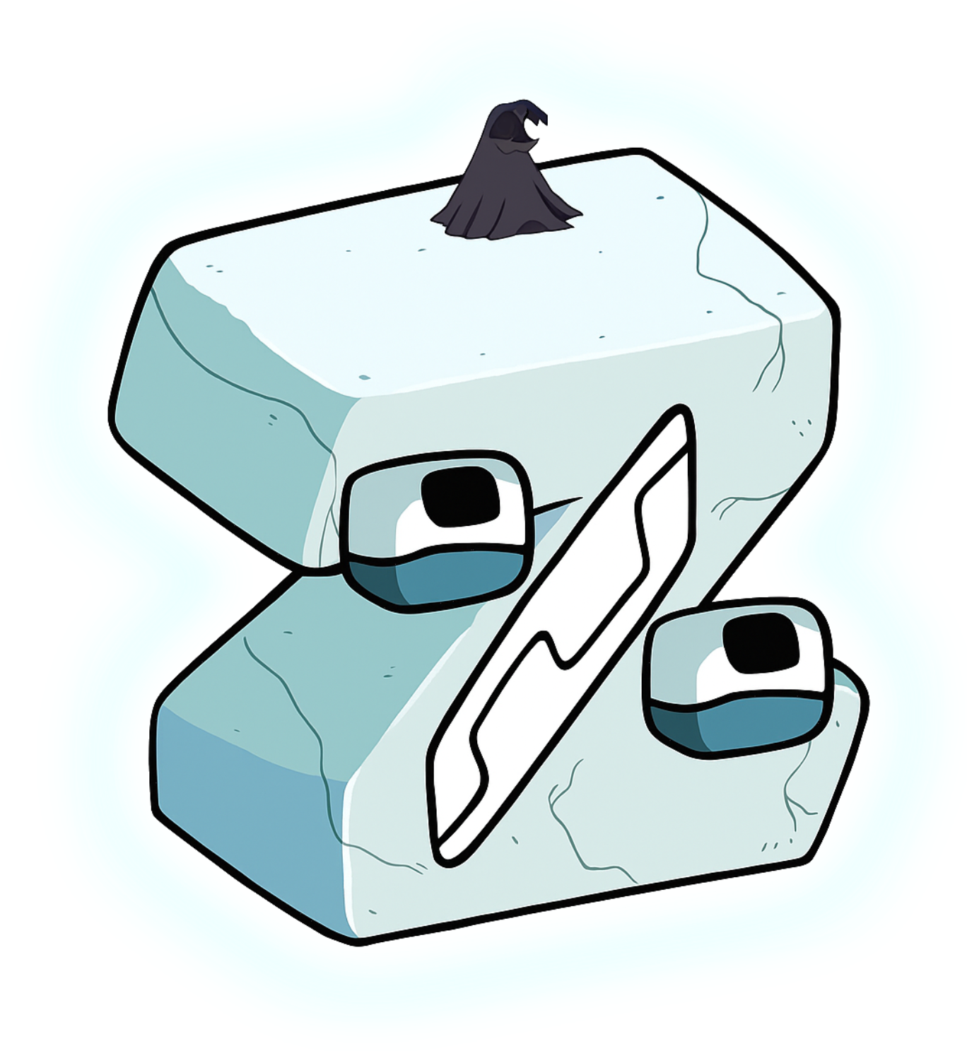 Z is a gigantic white letter Z which is slightly cracked, which the other letters inhabit on. His eyes are located at the top left and bottom right of his face, and his mouth is diagonal down the middle. His mouth has shark-like teeth, similar to T. He has stone skin and is so big he has decently strong gravity and an atmosphere. Inside, his pores are gray. It is possible that the cracks along his skin were created by T's burrowing, evidenced by him having none when the letters were all lowercase.